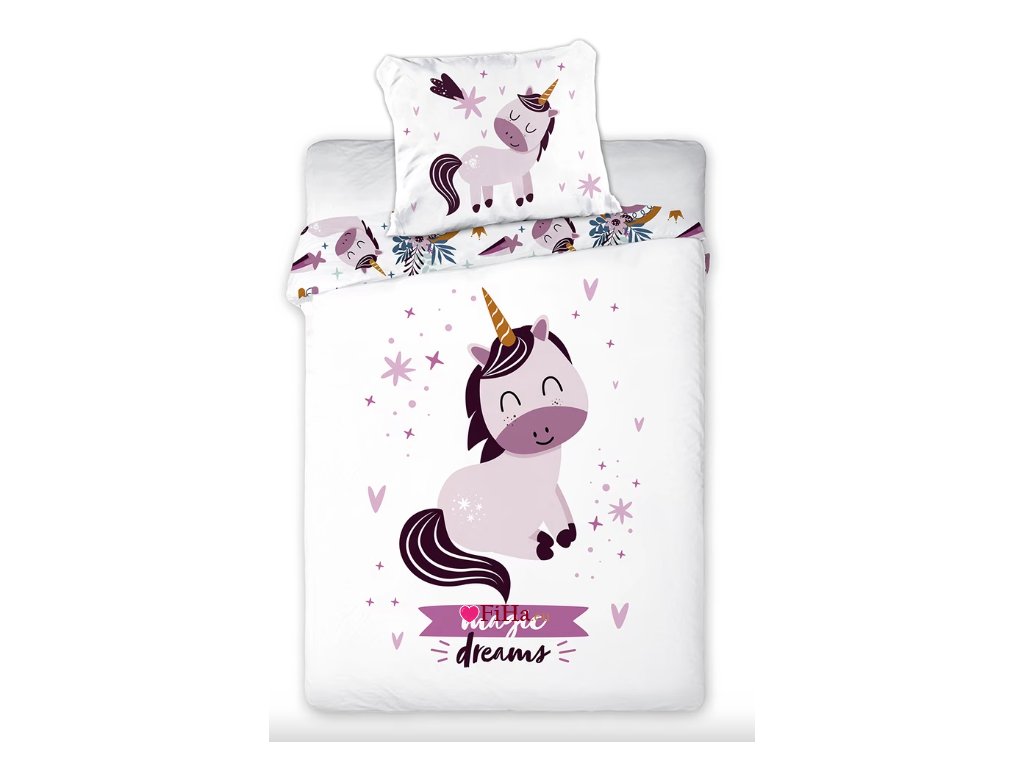 Obliečky Jednorožec Bavlna Hladká 40x60 135x100 cm